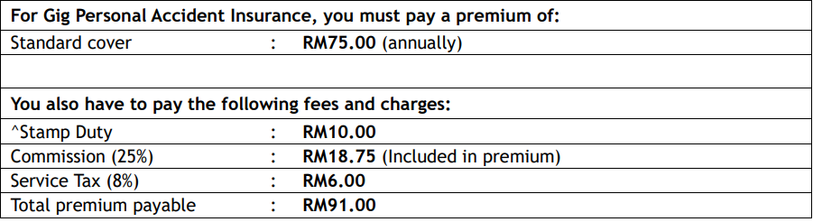 - Please refer to Policy Document for detailed information about Gig PA Insurance Schedule of Benefits.